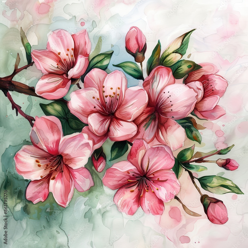 A Beautiful Watercolor Painting Featuring Blooming Pink Cherry Wallpaper Mural - Decorly Solutions | Decorly Solutions