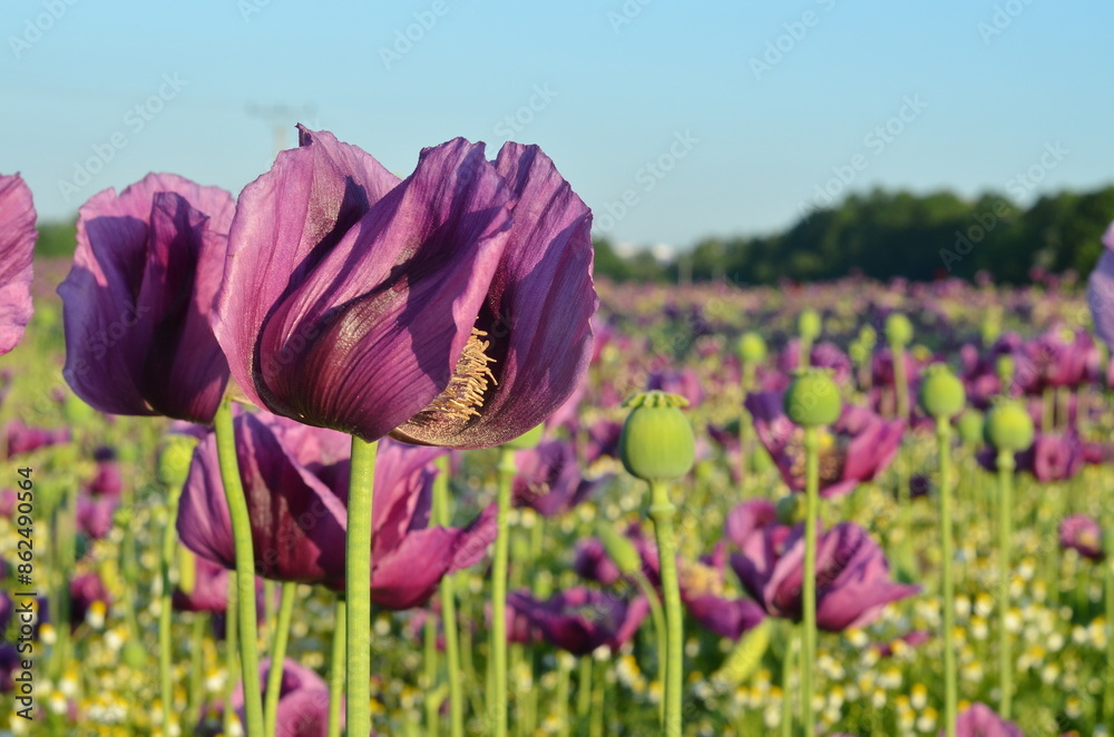 beautiful relaxing background purple poppy flowers, field, nature, relax, beauty, healthy style, summer