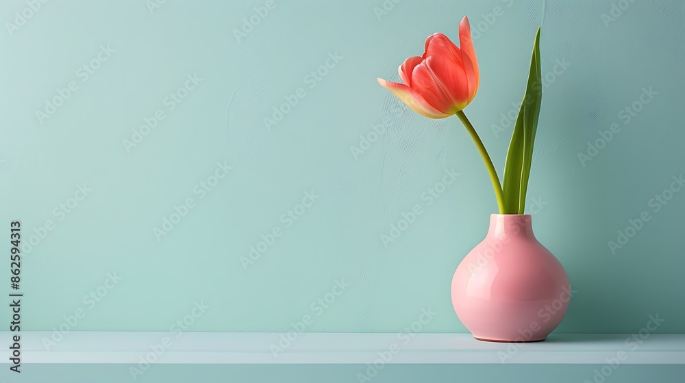 Tulip Flower In A Pastel Pink Vase On Wallpaper Mural - Decorly Solutions | Decorly Solutions
