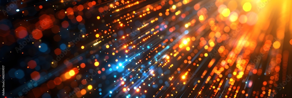 Digital technology abstract background with blurred lights and moving lights, in the style of precisionist lines