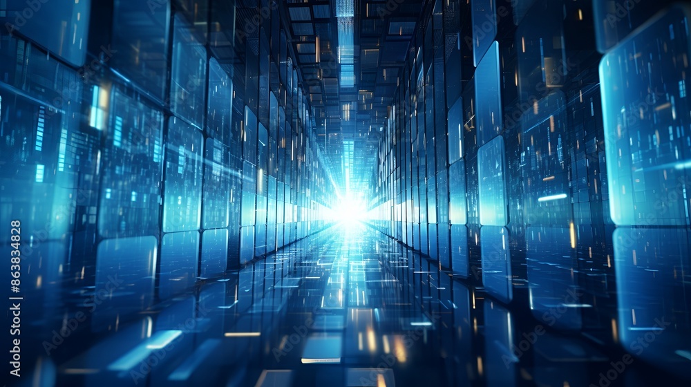 abstract tunnel virtual digital backgrounds, infused with binary code and digital information,, generative ai