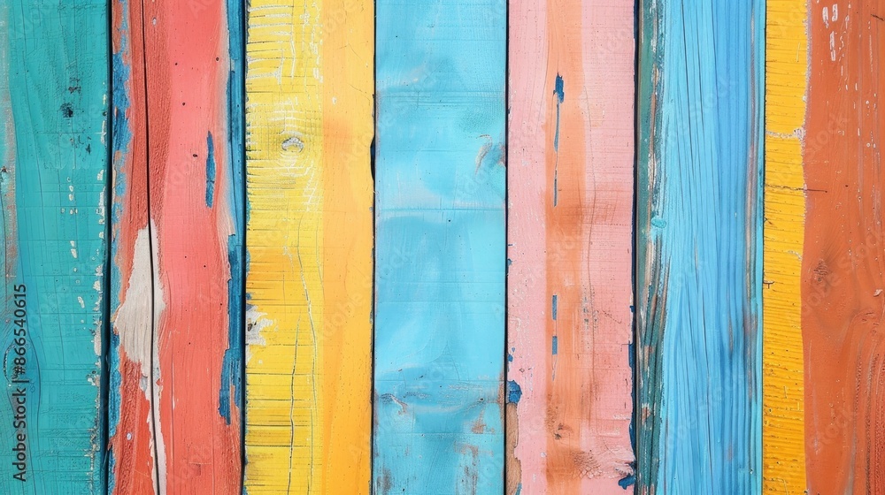 Vibrant close up of a colorful painted wooden wall, suitable for backgrounds and textures