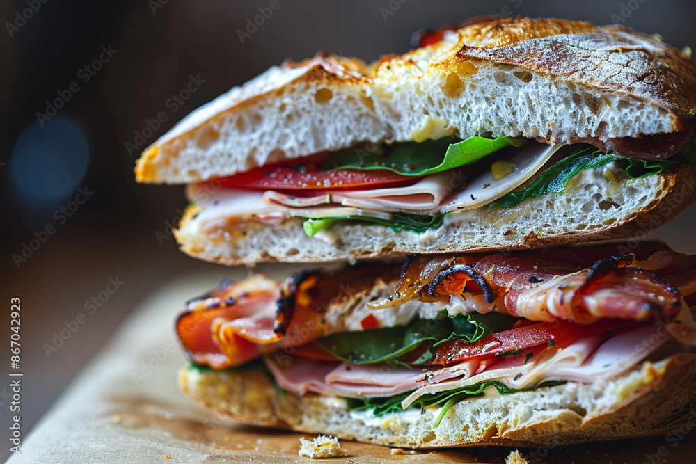 Close Up Sandwich On The Dish With Plain Wallpaper Mural - Decorly Solutions | Decorly Solutions