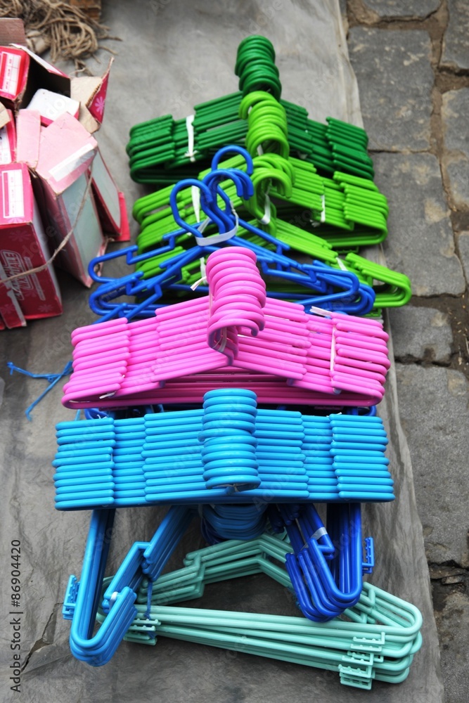 Used clothes in secondary market, thrift store, flea market, garage sale, charity shop. Second life of clothes, bags and shoes. Zero waste, sustainable lifestyle
