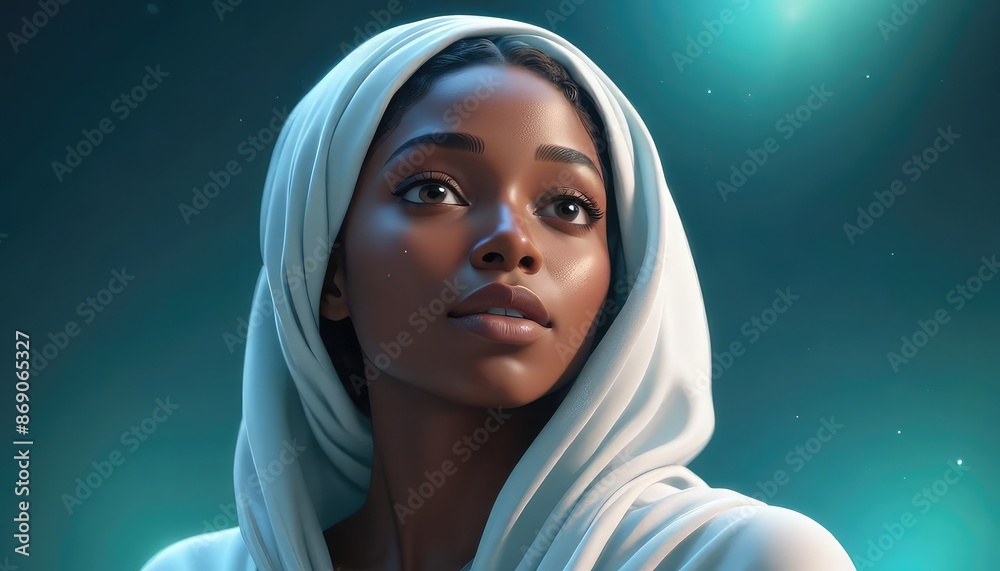 Portrait of a Black Woman in a Shawl Looking Up Depicting a Wallpaper
