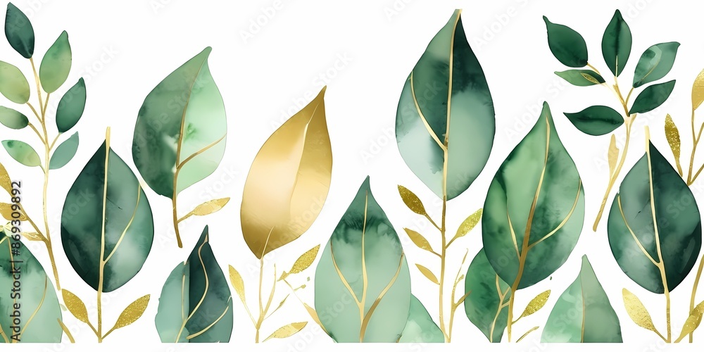 Illustration With Green Gold Leaves And Branches Generative Wallpaper Mural - Decorly Solutions | Decorly Solutions