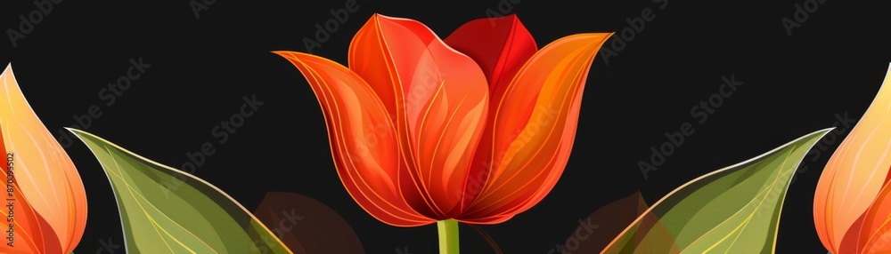 Vibrant Orange Tulips With Green Leaves On A Wallpaper Mural - Decorly Solutions | Decorly Solutions