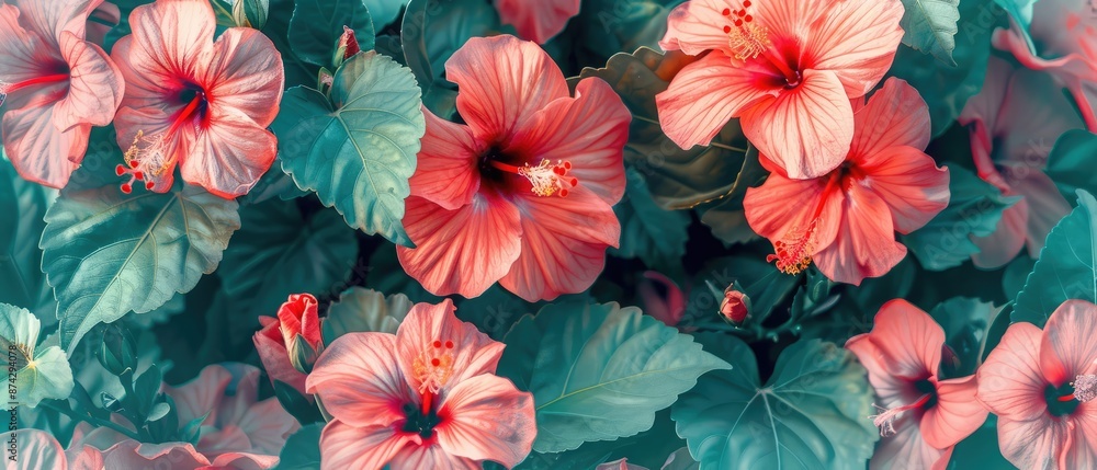 Digital Illustration Of Fantasy Vintage Botanical Hibiscus Flowers Wallpaper Mural - Decorly Solutions | Decorly Solutions