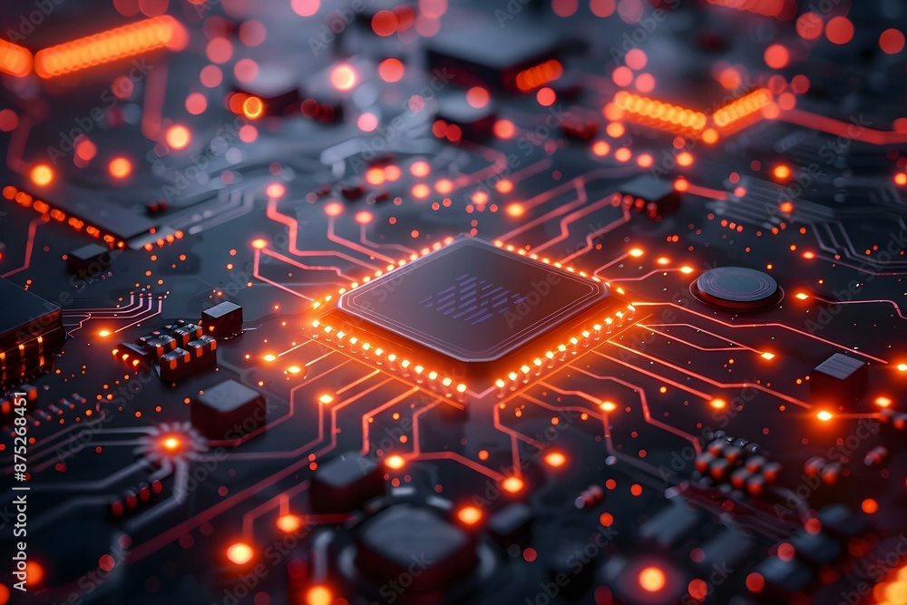 digital circuit board with ai chip. vibrant color circuit board. new technology, cyber technology and ai technology concept