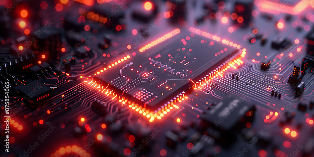 Glowing red circuit board central processor unit