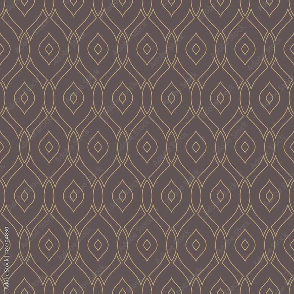 Seamless vector pattern. Modern geometric brown and golden ornament with royal lilies. Classic background