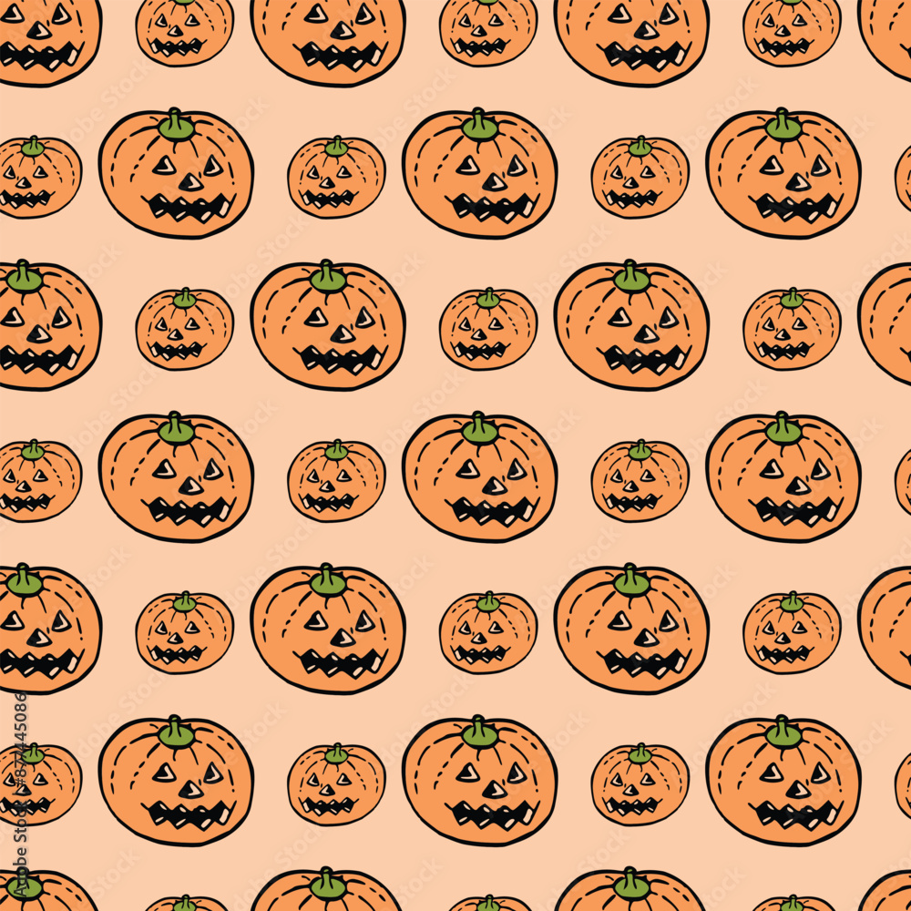 Pumpkin Heads White Seamless Vector Pattern Design Wallpaper Mural - Decorly Solutions | Decorly Solutions