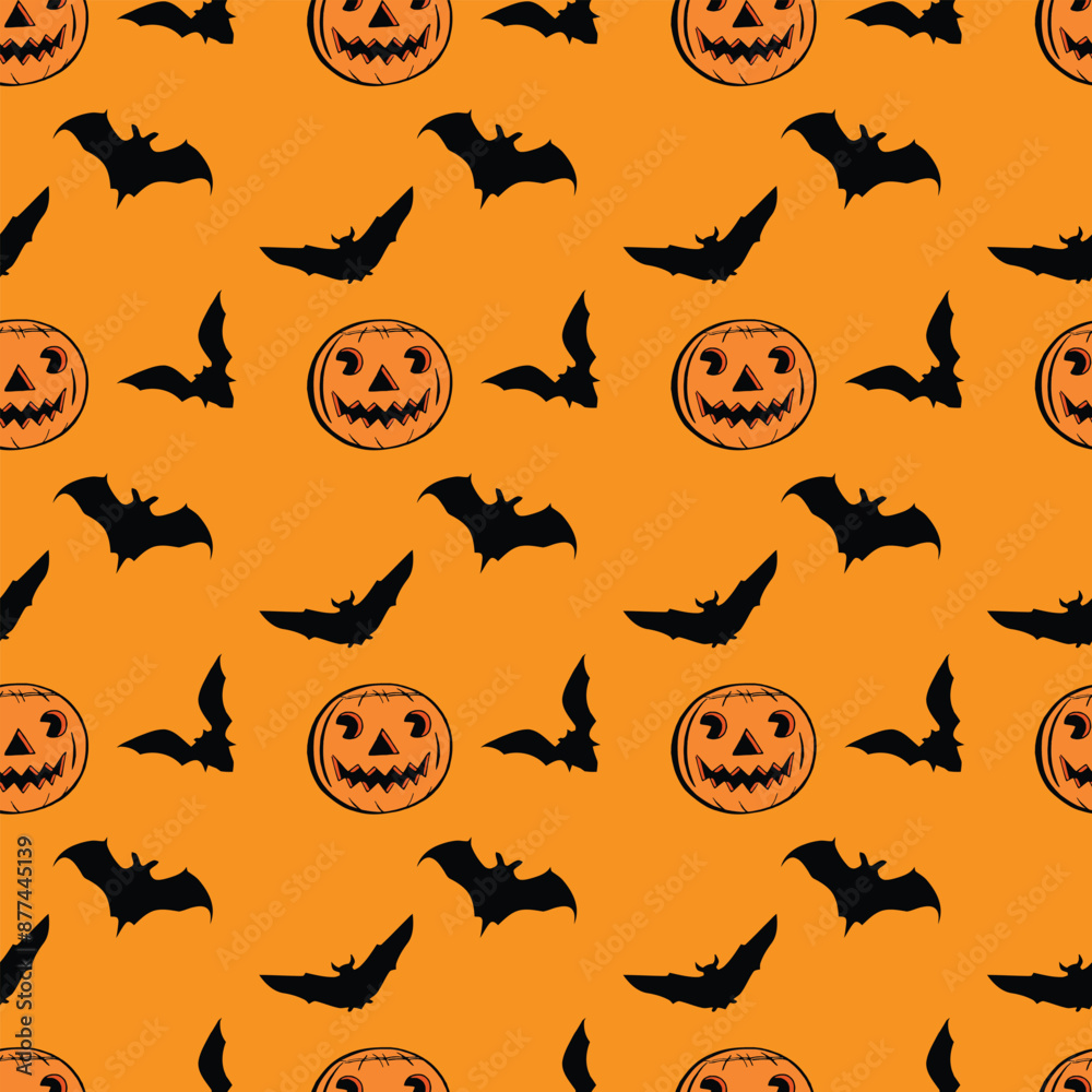 Seamless halloween pattern featuring pumpkins bats and spooky elements in vibrant orange and brown colors