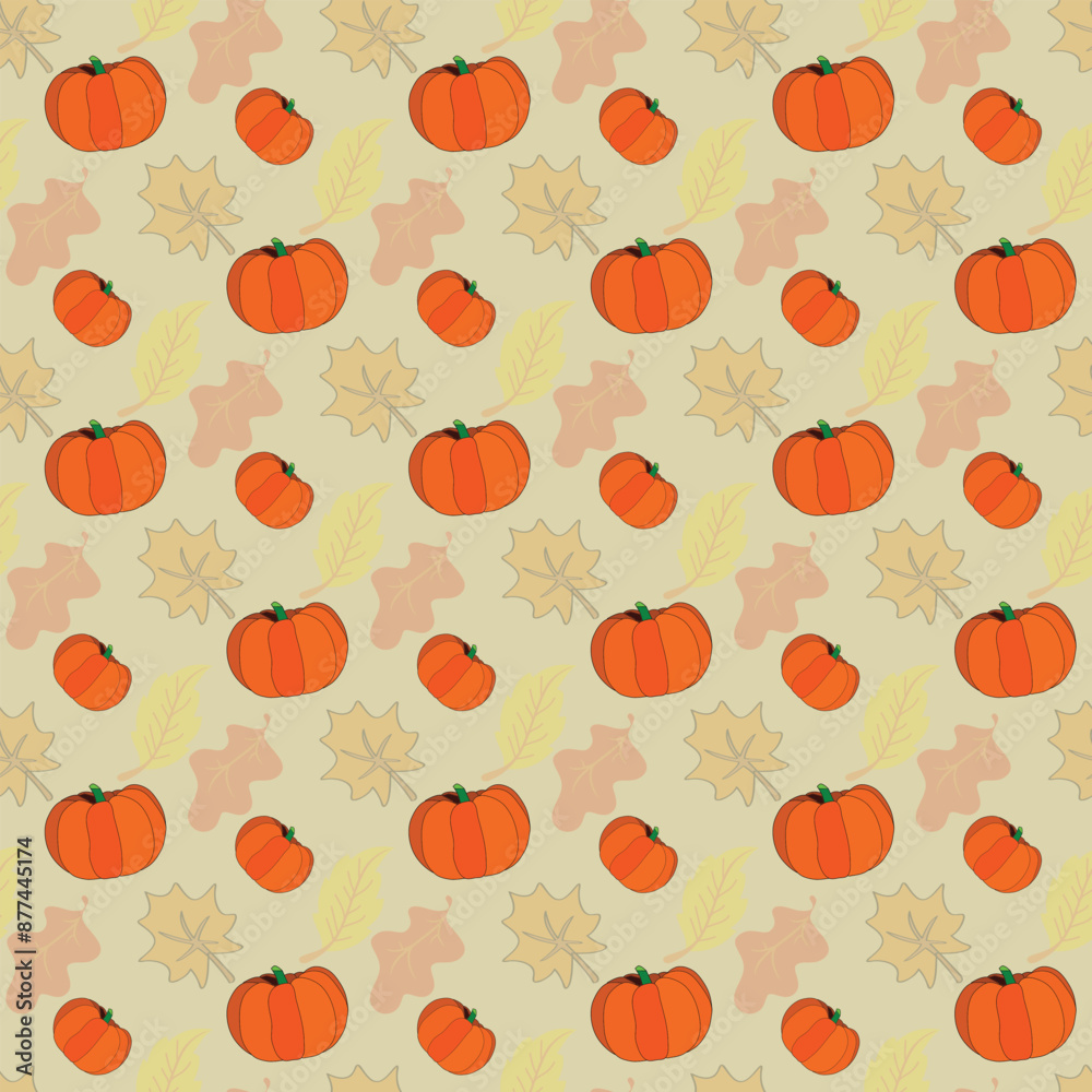 Pumpkins On Autumn Leaves Seamless Vector Pattern Design Wallpaper Mural - Decorly Solutions | Decorly Solutions