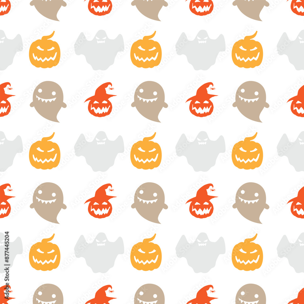 Scary Pumpkins And Ghosts Seamless Vector Pattern Design Wallpaper