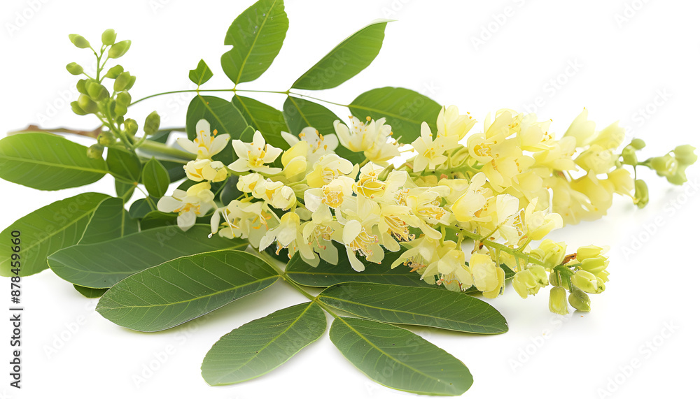 Blossoming Acacia With Leafs Isolated On White Background Wallpaper Mural - Decorly Solutions | Decorly Solutions