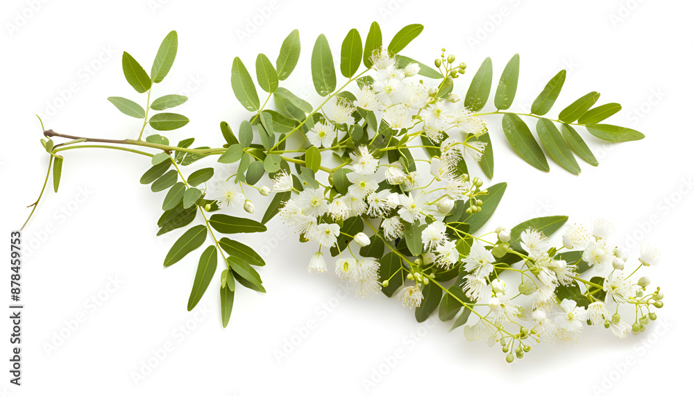 Blossoming Acacia With Leafs Isolated On White Background Wallpaper Mural - Decorly Solutions | Decorly Solutions