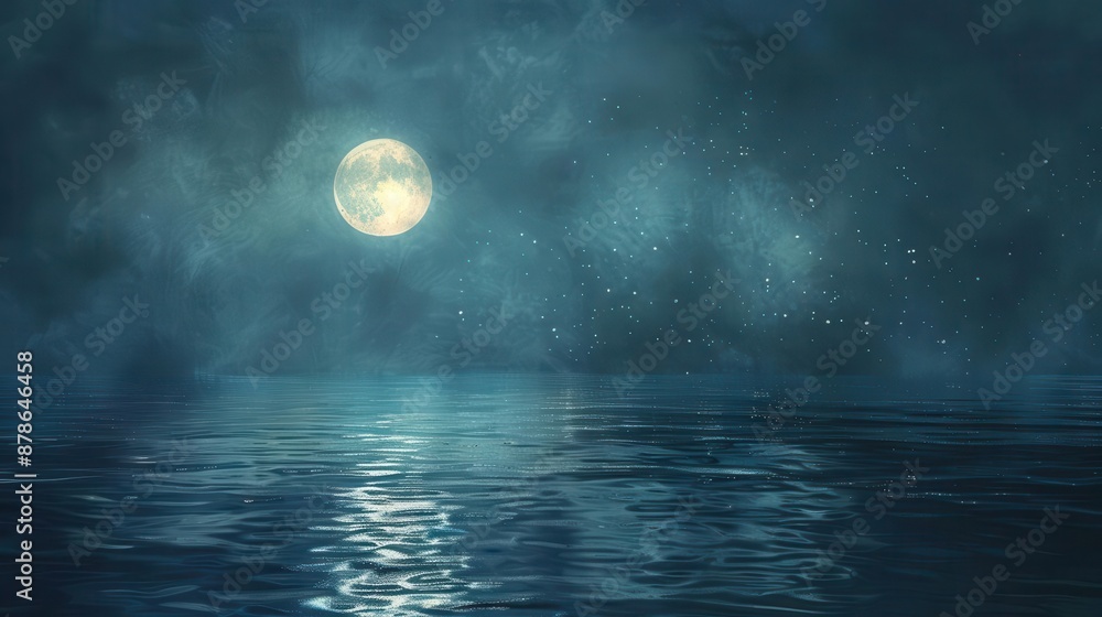 Enchanting Night Sky With A Luminous Full Moon Wallpaper Mural - Decorly Solutions | Decorly Solutions