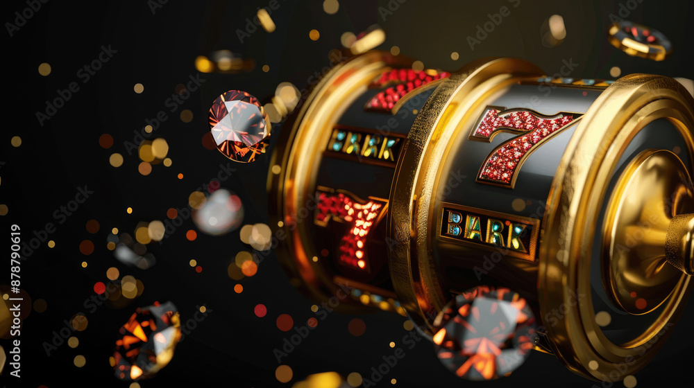 Luxurious Slot Machine with Floating Diamonds and Golden 7 B Wallpaper