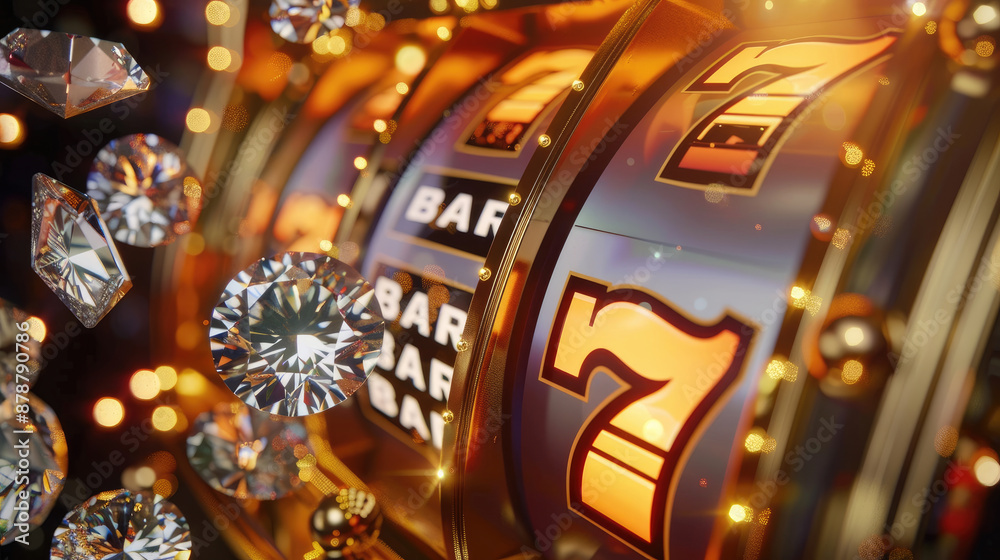 Luxurious Slot Machine with Floating Diamonds and Golden 7 B Wallpaper