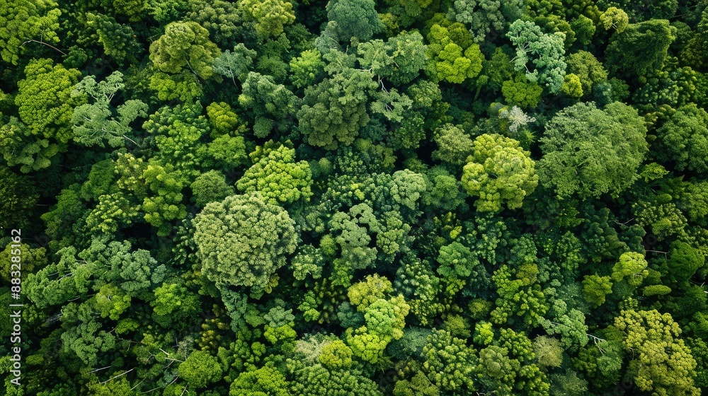 Lush green forest canopy, ideal for eco-friendly products and sustainable lifestyle campaigns.
