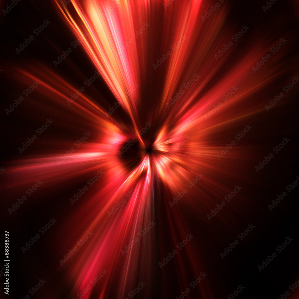 Abstract Explosion Of Red Light Beams Against Black Background Motion Blur Effect