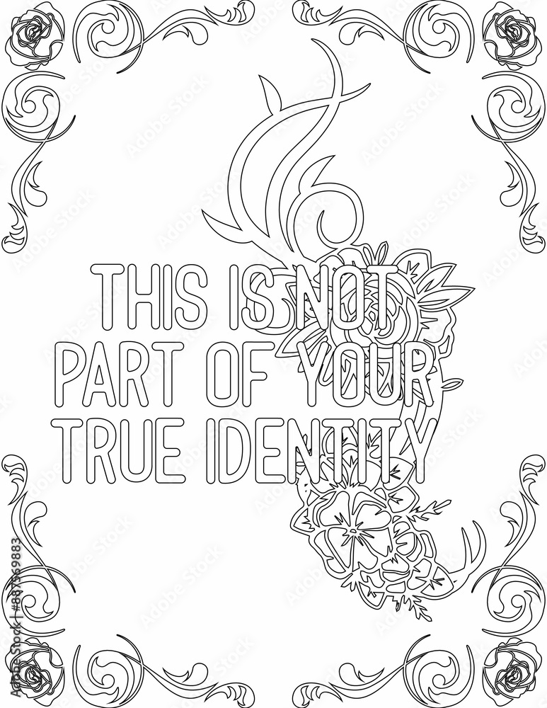 Printable floral coloring page for kids and adults with inspirational words for self talk and self improvement. it helps to succeed and struggle against life to enjoy the tough journey