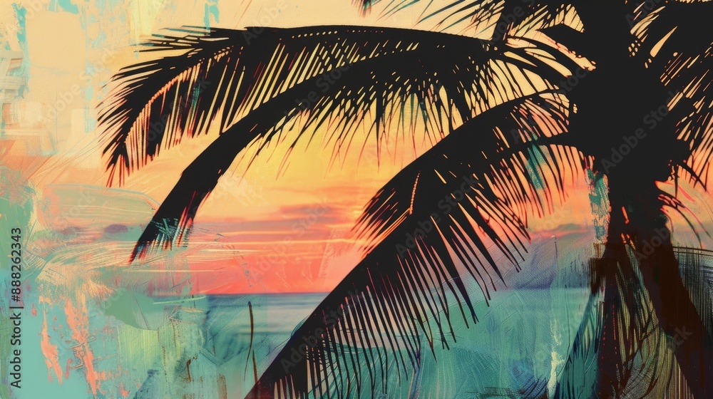 Tropical Sunset Silhouette Palm Tree Against Vibrant Sky Wallpaper Mural - Decorly Solutions | Decorly Solutions