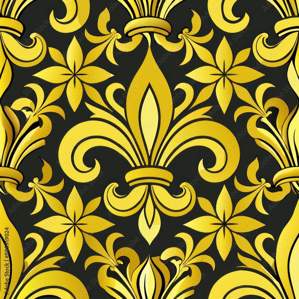 Seamless Pattern Of Stylized Fleur-de-lis In Gold Generative Wallpaper Mural - Decorly Solutions | Decorly Solutions