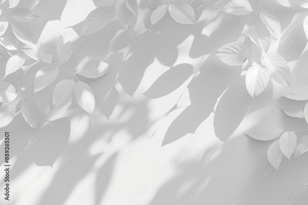 On a concrete wall, an abstract textured background in black and white depicts the shadow of a leaf