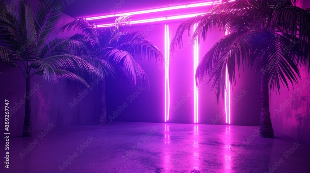 Retro Neon Light Illustration Of A Tropical Background Wallpaper Mural - Decorly Solutions | Decorly Solutions