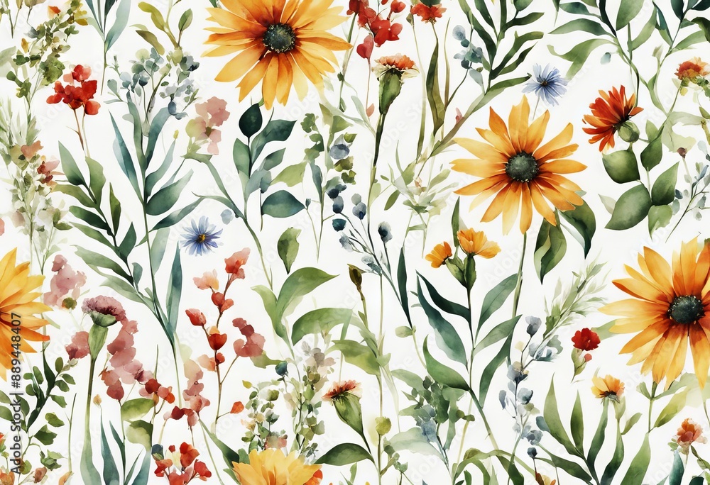 watercolor seamless pattern floral flowers stylish ornate flower leaf