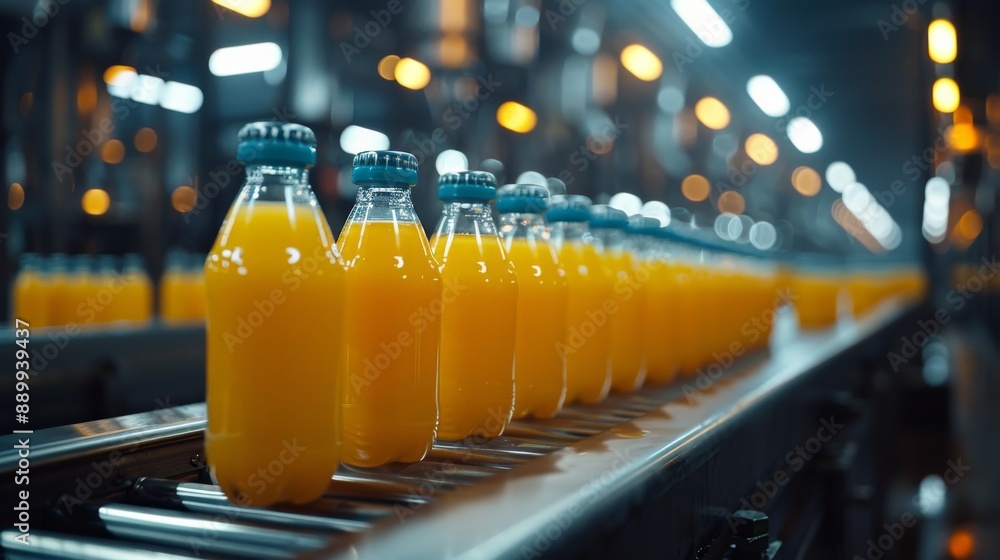 Orange Juice Bottles On A Conveyor Belt In Wallpaper Mural - Decorly Solutions | Decorly Solutions