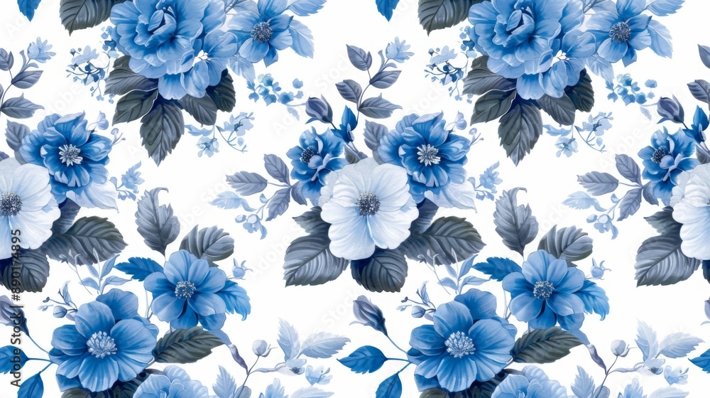 Watercolor Seamless Pattern With Blue And White Wallpaper Mural - Decorly Solutions | Decorly Solutions