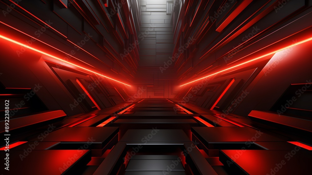 3d Rendering Of Red And Black Abstract Geometric Wallpaper Mural - Decorly Solutions | Decorly Solutions