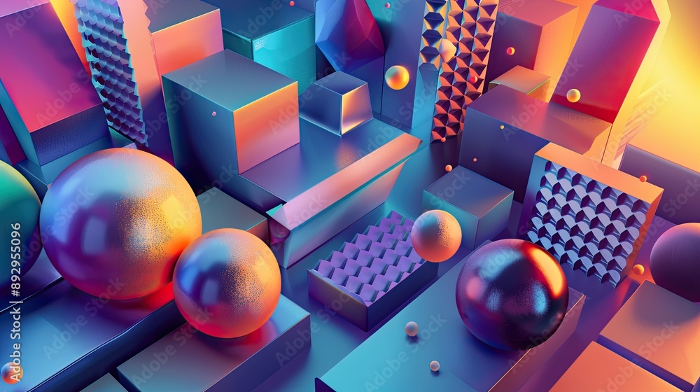 Vibrant abstract background with colorful 3D geometric shapes, perfect for modern design, creativity, and artistic inspiration.