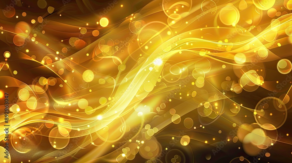 Abstract Golden Waves And Particles Flowing In Dark Space.