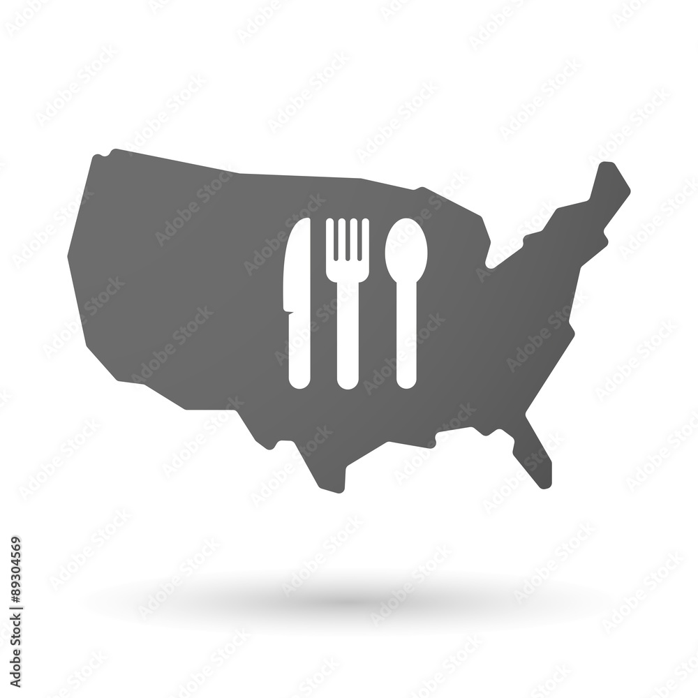 Usa Map Icon With Cutlery Wallpaper Mural - Decorly Solutions | Decorly Solutions