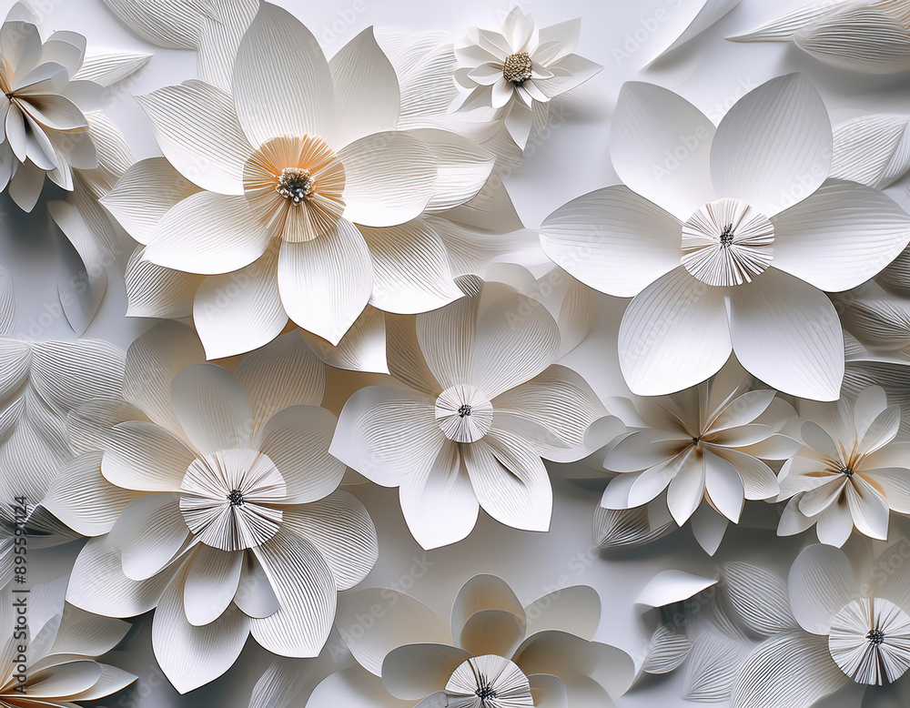 White Paper Flowers On A White Background Decorative Wallpaper Mural - Decorly Solutions | Decorly Solutions