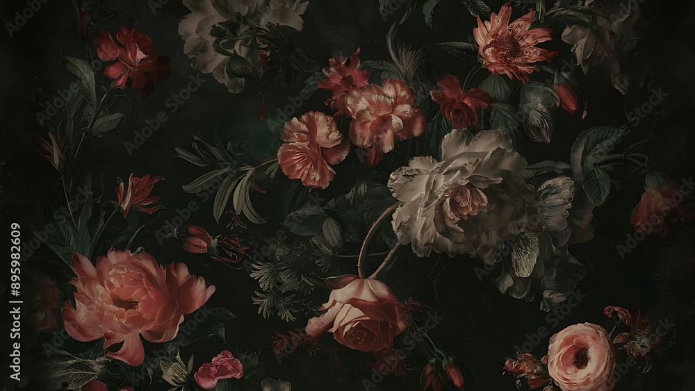 Dark floral with vintage botanical print and moody hues feat Wallpaper