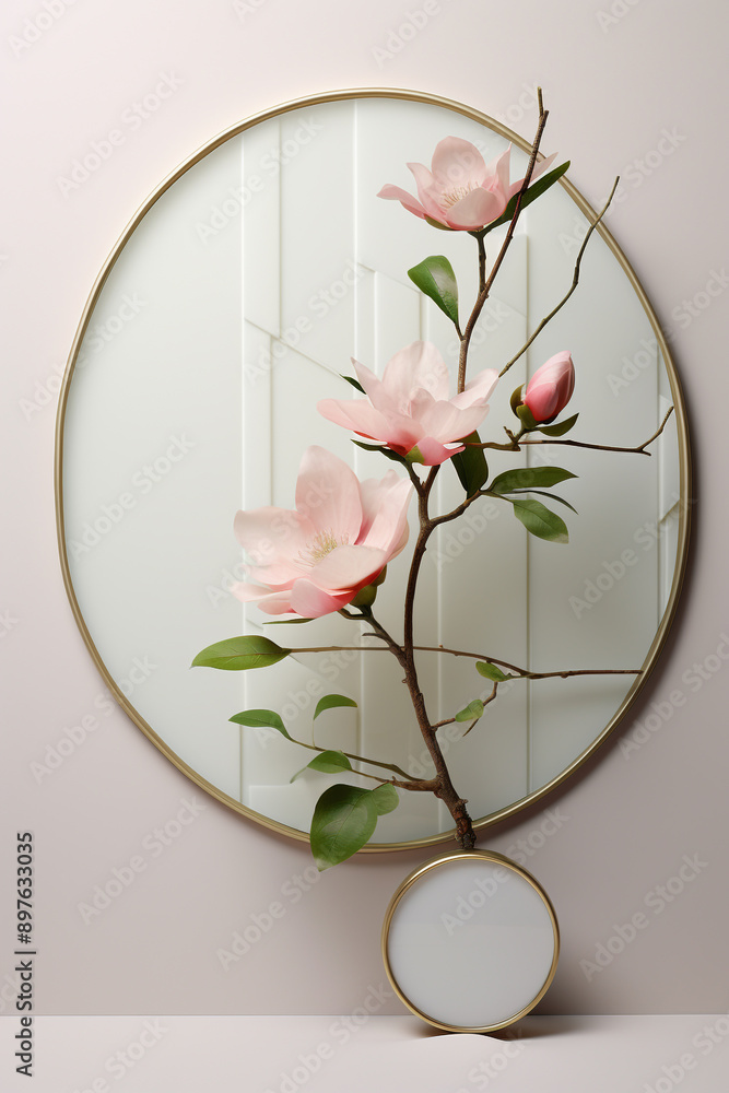 Peach And Pink Artificial Flowers On Beige Background