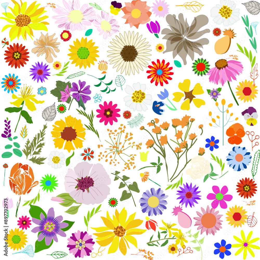 Sfondo con tanti fiori colorati di primavera Wallpaper