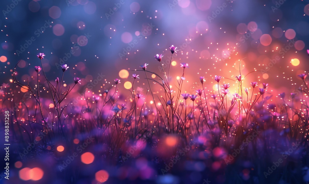 Wild Flower Field In The Night Magical Lights Wallpaper Mural - Decorly Solutions | Decorly Solutions