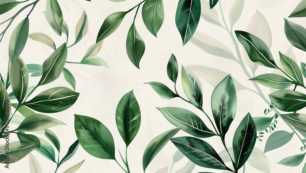 Green Leaves In A Flat Design Style Illustrated Wallpaper Mural - Decorly Solutions | Decorly Solutions