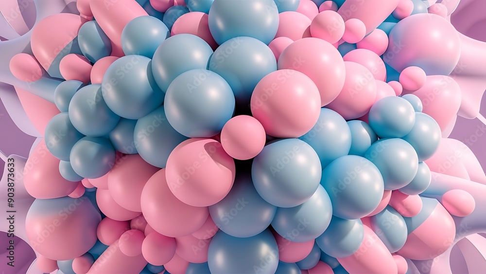 Light blue and pink 3d spheres pattern in a light pink backg Wallpaper