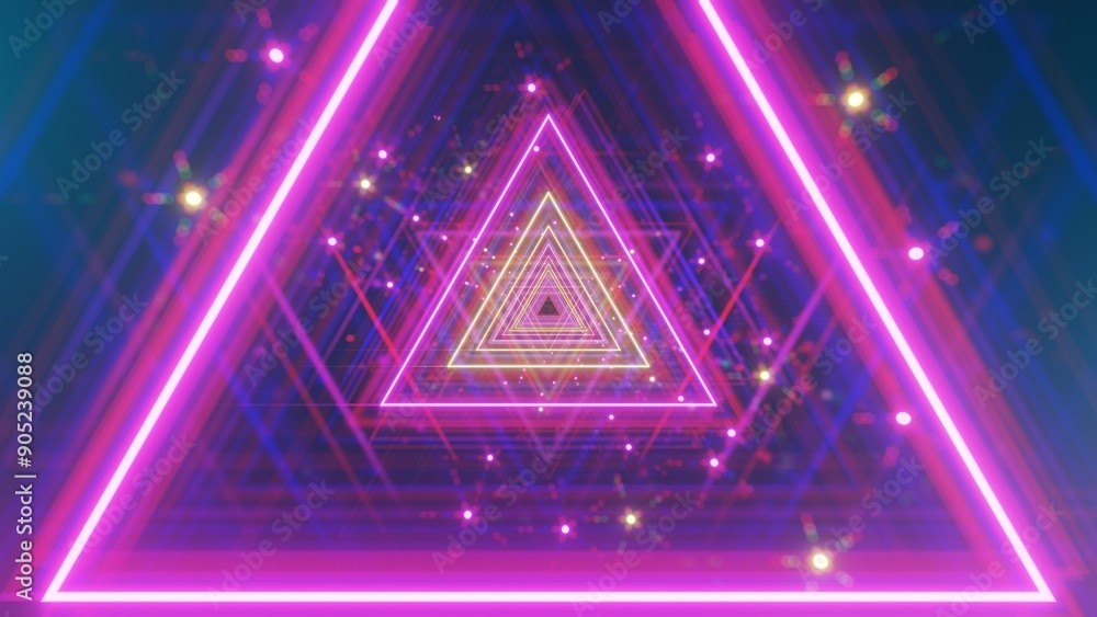 Neon Triangle In Futuristic Space. Futuristic Background. Illustration.