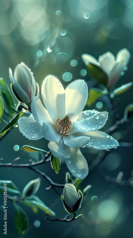 Close-up Of Dew-kissed Magnolia Flowers In Soft Focus Wallpaper Mural - Decorly Solutions | Decorly Solutions
