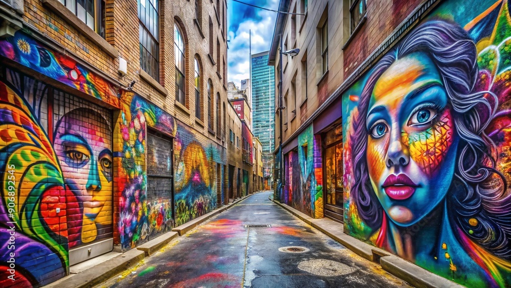 Colorful Vibrant Street Art In Urban Alleyway Wallpaper Mural - Decorly Solutions | Decorly Solutions