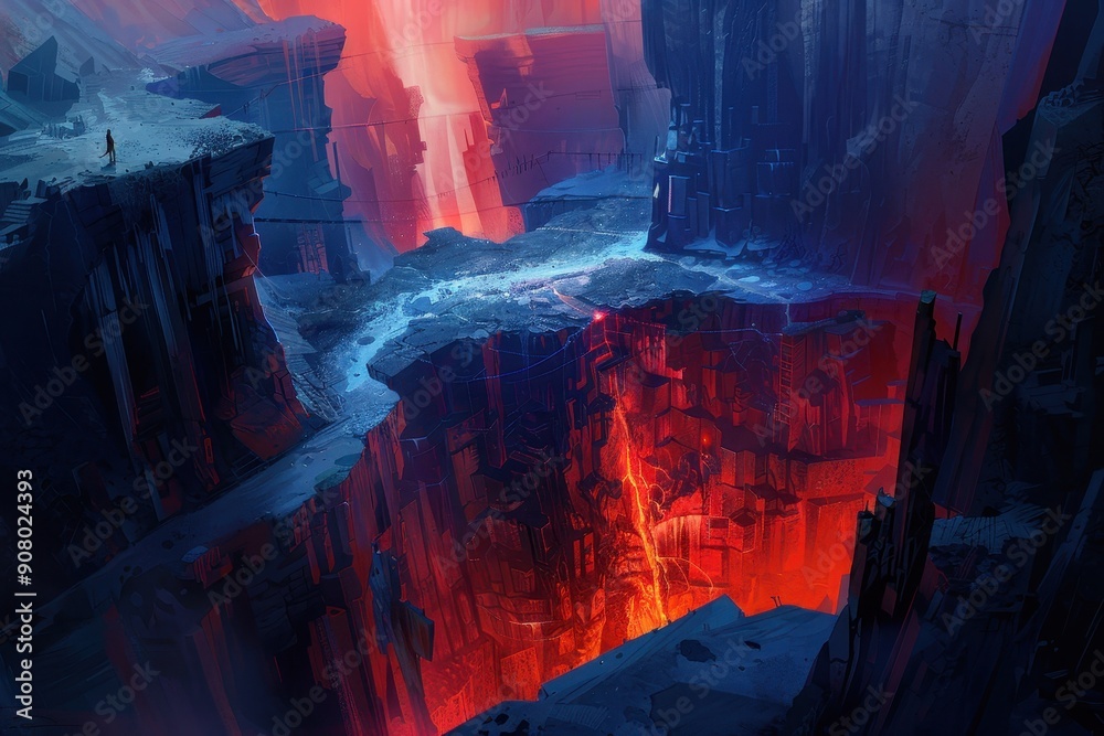 Fiery Lava Flowing Through Deep Volcanic Canyon