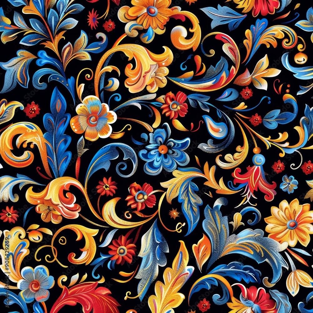 Ornate Floral Pattern With Yellow Blue And Red Wallpaper Mural - Decorly Solutions | Decorly Solutions